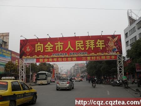 临湘市区主街的拜年喷绘广告