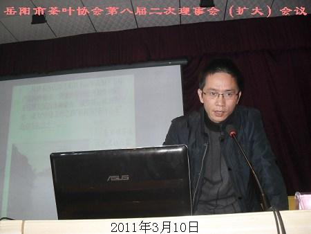 岳阳市茶叶协会第八届二次理事会(扩大)会议图片:谢立新经理介绍洞庭青砖及临湘永巨茶业有限公司