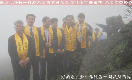 2011年4月17,湖南省茶叶研究所包小村所长一行受邀参加“2011中华茶祖节•南岳春茶祭典”活动。祭典于当日9时58分在毗卢洞茶园成功举行,衡阳市副市长蒋勋功,衡阳市人大副主任、南岳茶文化研究会名誉会长旷喻炎、南岳区副区长黄顺发等领导及新闻媒体与众多爱茶人士、南岳茶文化研究会会员等200多人参加。蒋勋功副市长亲自诵读祭文。祭典结束后,司仪宣布正式开山采茶。