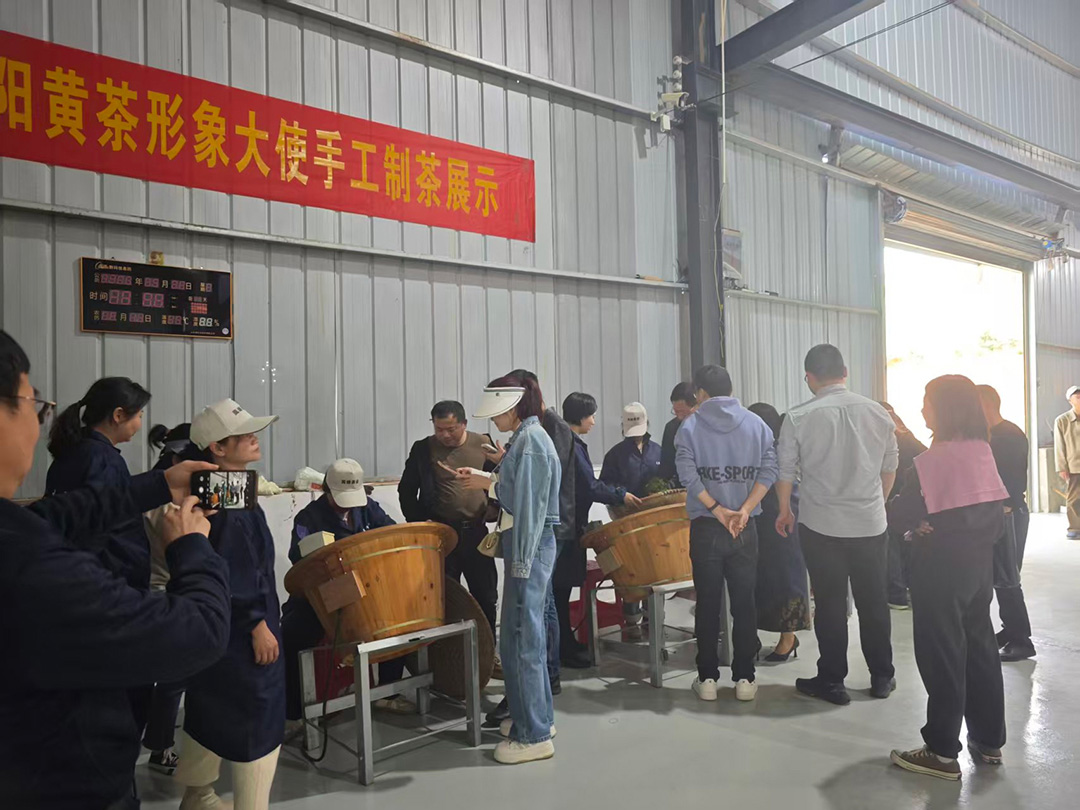开采仪式后,岳阳市茶叶协会组织岳阳黄茶形象大使展示手工制茶