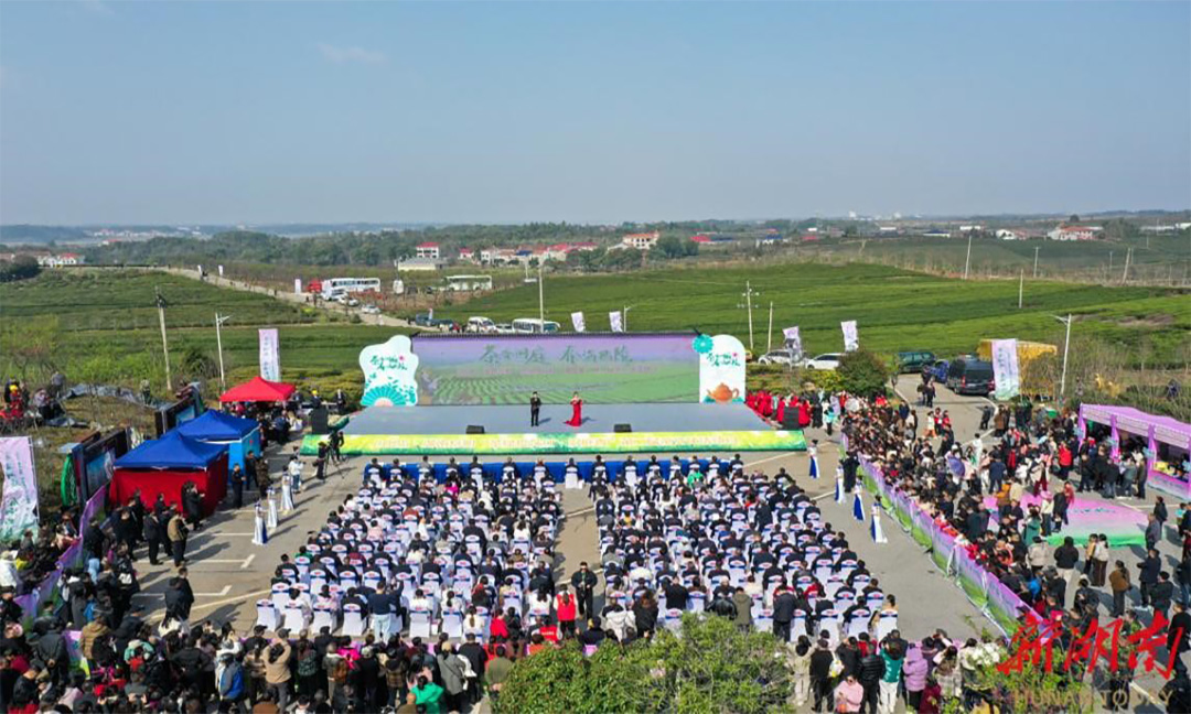 3月16日,2025湖南岳阳“茶绿樱花红·洞庭春”第二届茶文化活动日在黄沙街镇洞庭春茶场举行。本次活动包括了精彩的文艺表演、特色农产品巡展、采茶比赛等活动,并举行了茶场原领导、知青、黄沙街镇寓外乡友座谈会以及岳阳市茶产业高质量发展论坛。